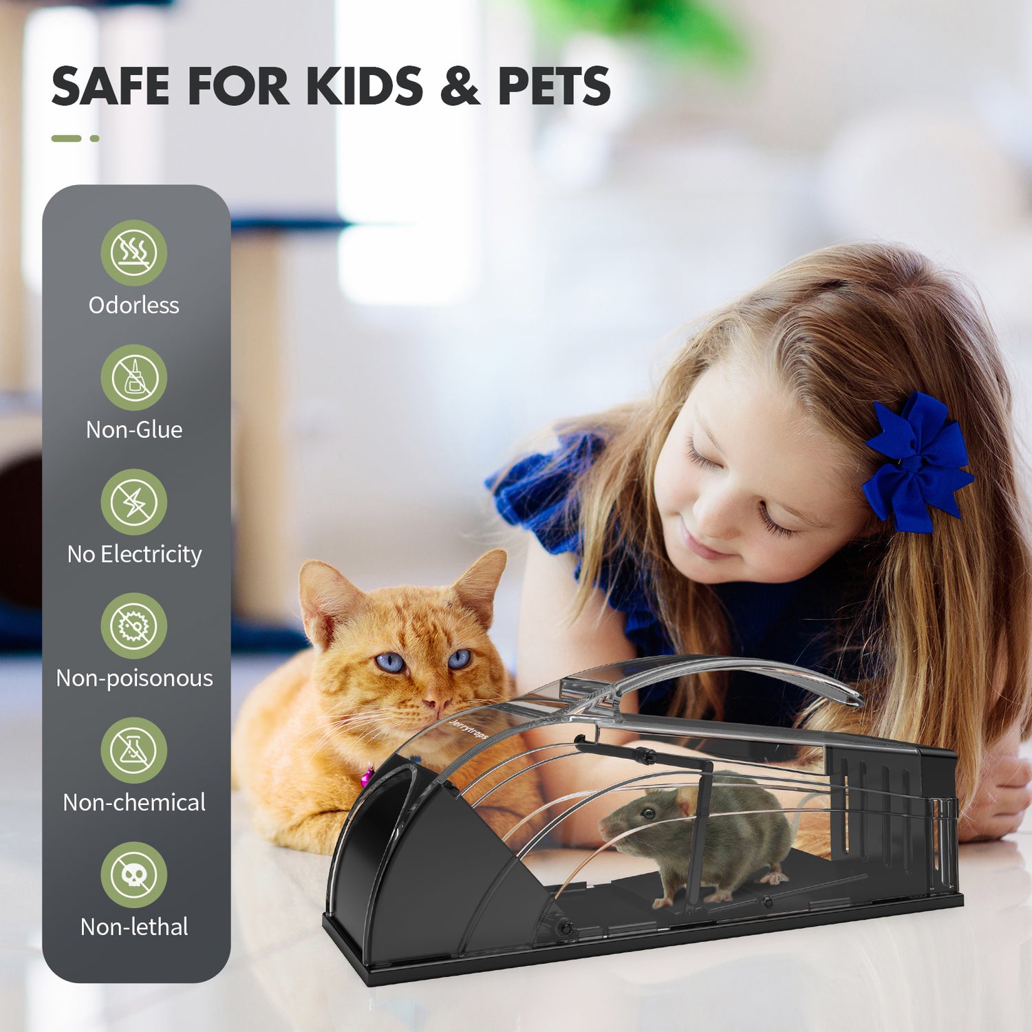 umane Mouse Trap No Kill,Catch and Release Indoor/Outdoor Mouse Traps for Mice,Easy to Set,Mouse Catcher Quick Effective Reusable and Safe for Families Black 2PCS